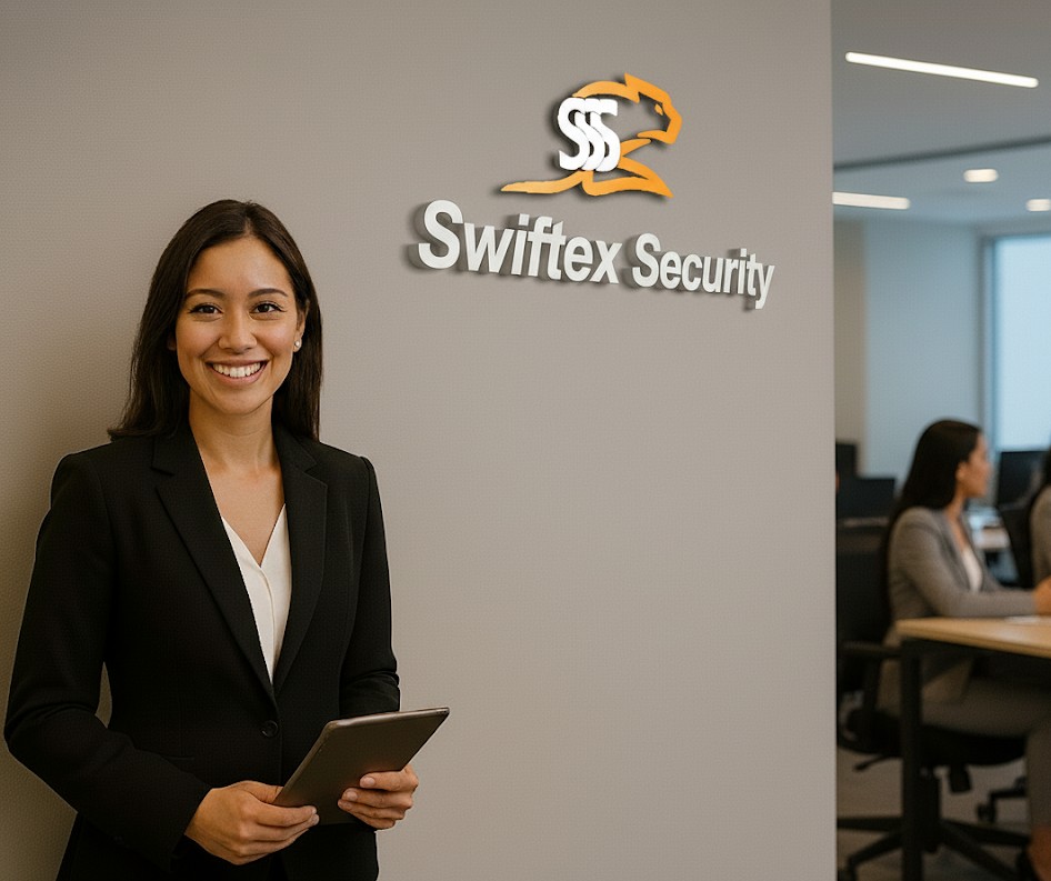 All guards at Swiftex receive detailed instructions on maintaining a professional appearance by dressing decently, arriving punctually, and being fully prepared for their duties. They must report to management as required and attend all scheduled meetings.